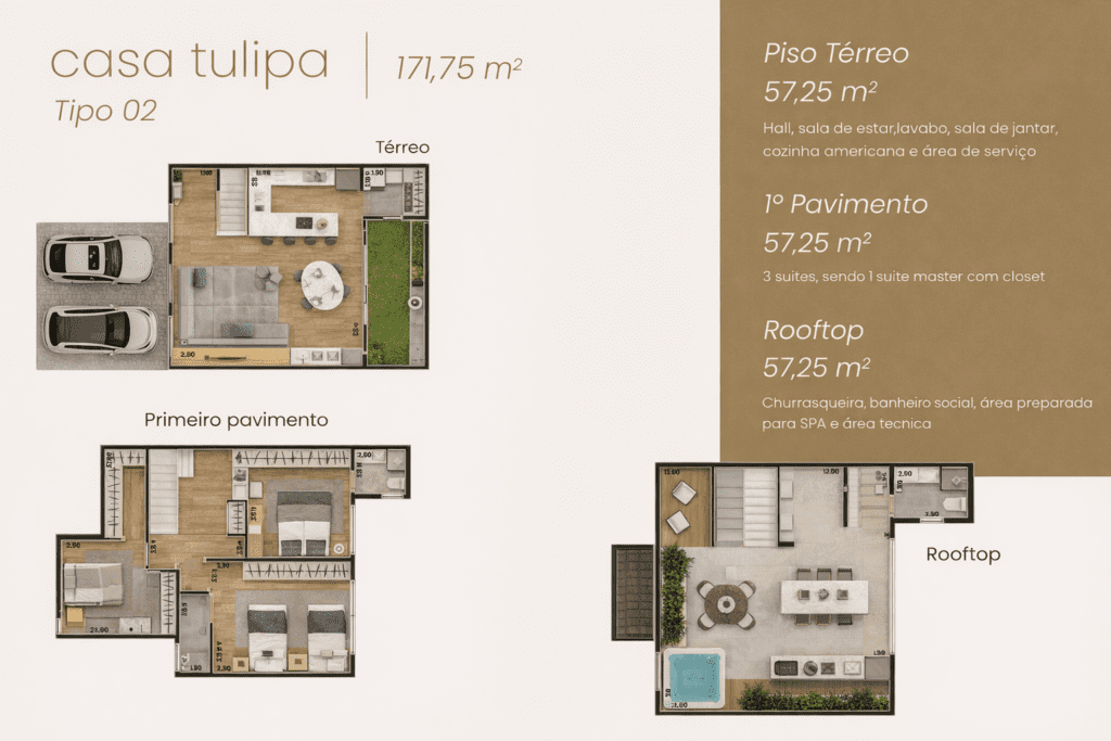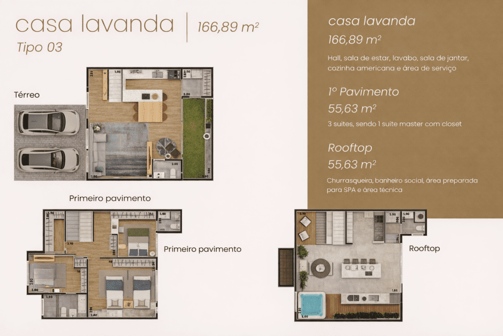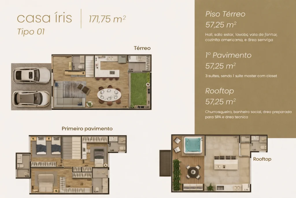 O Oni Dijon foi pensado para quem busca uma casa em condomínio com proposta mais sofisticada, arquitetura contemporânea e uma rotina com mais conforto, segurança e privacidade. No Parque Taquaral, o projeto une localização estratégica, infraestrutura para automação residencial, garagem para 2 carros com tomada para veículo elétrico e um rooftop exclusivo com churrasqueira, banheiro social e área preparada para spa.